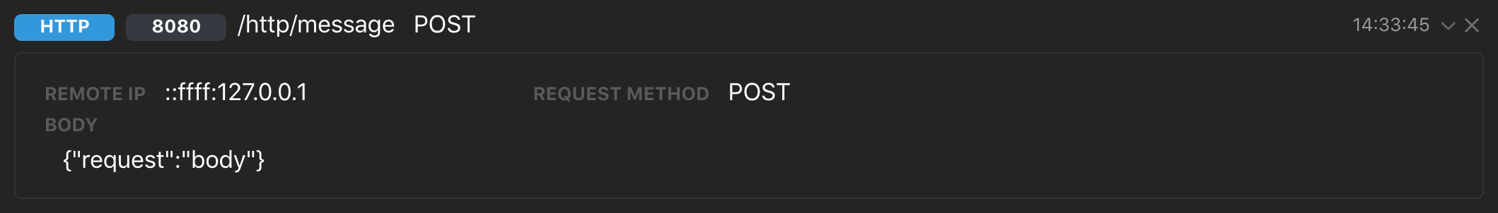 HTTP items display the port and message. The expanded view includes the sender IP, port and the body of the request (where applicable).