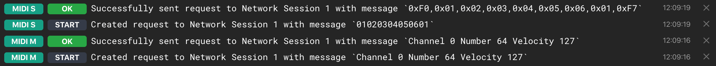 MIDI items display the device and message. This message is presented in a readable format for musical MIDI and hex string for SysEx.